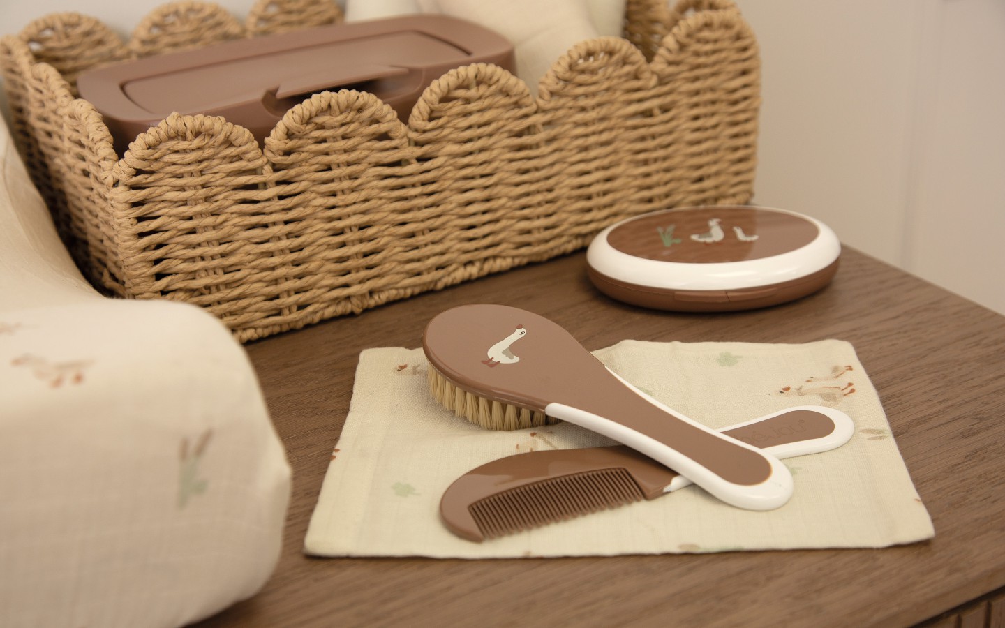 Met het kapsetje van bébé-jou breng je het kapsel van je kleintje eenvoudig in model. Het kammetje is ergonomisch vormgegeven en kan door de zachte bolletjes aan de uiteinden van de tandjes de hoofdhuid niet beschadigen. De borstel is gemaakt van nylon en heerlijk zacht.