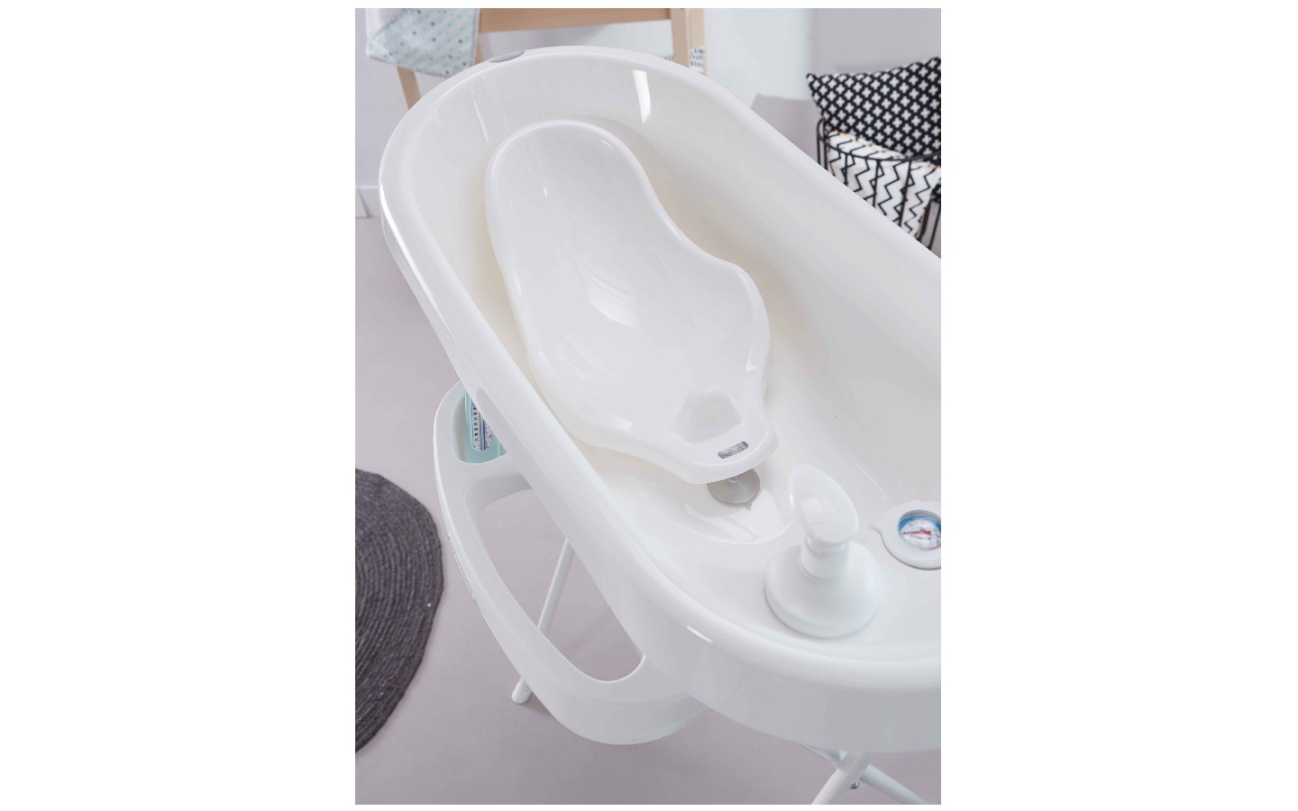 The bébé-jou bath support provides comfortable support for your child. It ensures that your baby has an upright position with his head up. With the suction cups it’s easy to place the support onto the bottom of the bébé-jou baby bath or bébé-jou Thermo bath, so that it's firmly seated. The bath support is suitable for babies from 0 to about 8 months. Caution! Hold your baby at all times during bathing, also in the bébé-jou bath support.