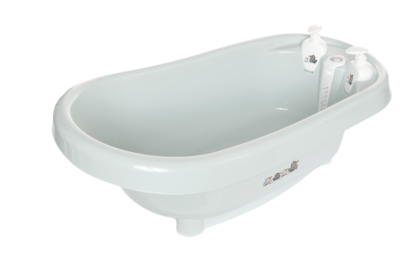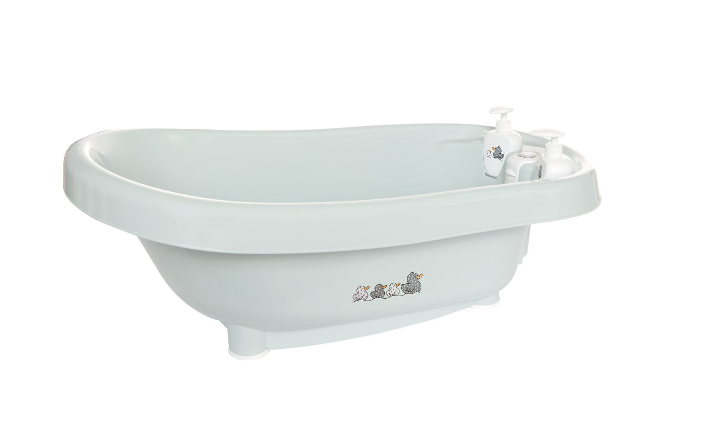 With the bébé-jou Thermo bath with our innovative “CLICK-system” you choose for safety and extra comfort during the bathing of your child. With the help of this innovative system you can easily and solidly place the bath with just “2 clicks” on the bébé-jou bath stand (2200 or 2205). The bath comes just as easily off the stand as it is placed on it, by squeezing the system on the bottom of the stand. This bath also comes with an integrated bath thermometer and two soap dispensers: one for shampoo and one for soap. A luxurious bath with everything you might need, so that you can optimally focus on your little one during bathing. The thermometer also functions as a plug, when it is pushed upwards the bath is slowly drained. The water can be caught in (for example) the bébé-jou nappy pail with the included drain hose. In this way heavy lifting will be avoided.