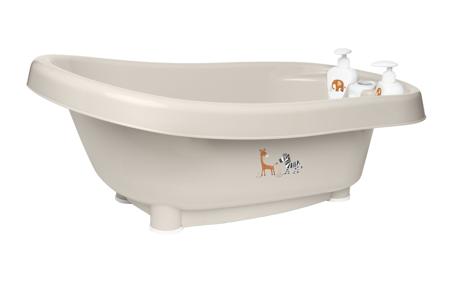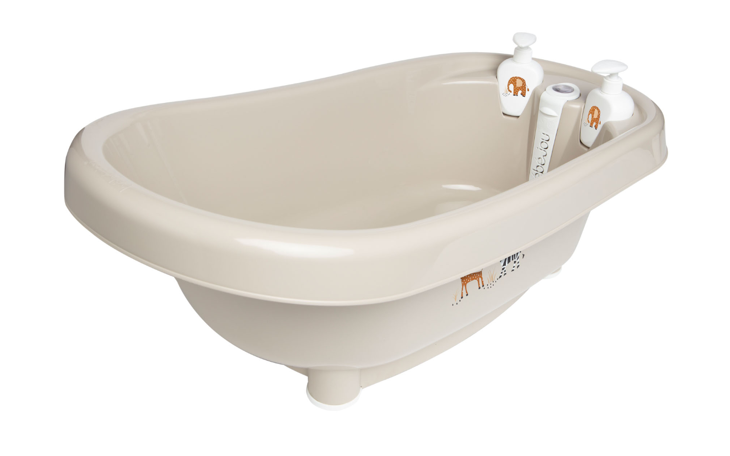 With the bébé-jou Thermo bath with our innovative “CLICK-system” you choose for safety and extra comfort during the bathing of your child. With the help of this innovative system you can easily and solidly place the bath with just “2 clicks” on the bébé-jou bath stand (2200 or 2205). The bath comes just as easily off the stand as it is placed on it, by squeezing the system on the bottom of the stand. This bath also comes with an integrated bath thermometer and two soap dispensers: one for shampoo and one for soap. A luxurious bath with everything you might need, so that you can optimally focus on your little one during bathing. The thermometer also functions as a plug, when it is pushed upwards the bath is slowly drained. The water can be caught in (for example) the bébé-jou nappy pail with the included drain hose. In this way heavy lifting will be avoided.