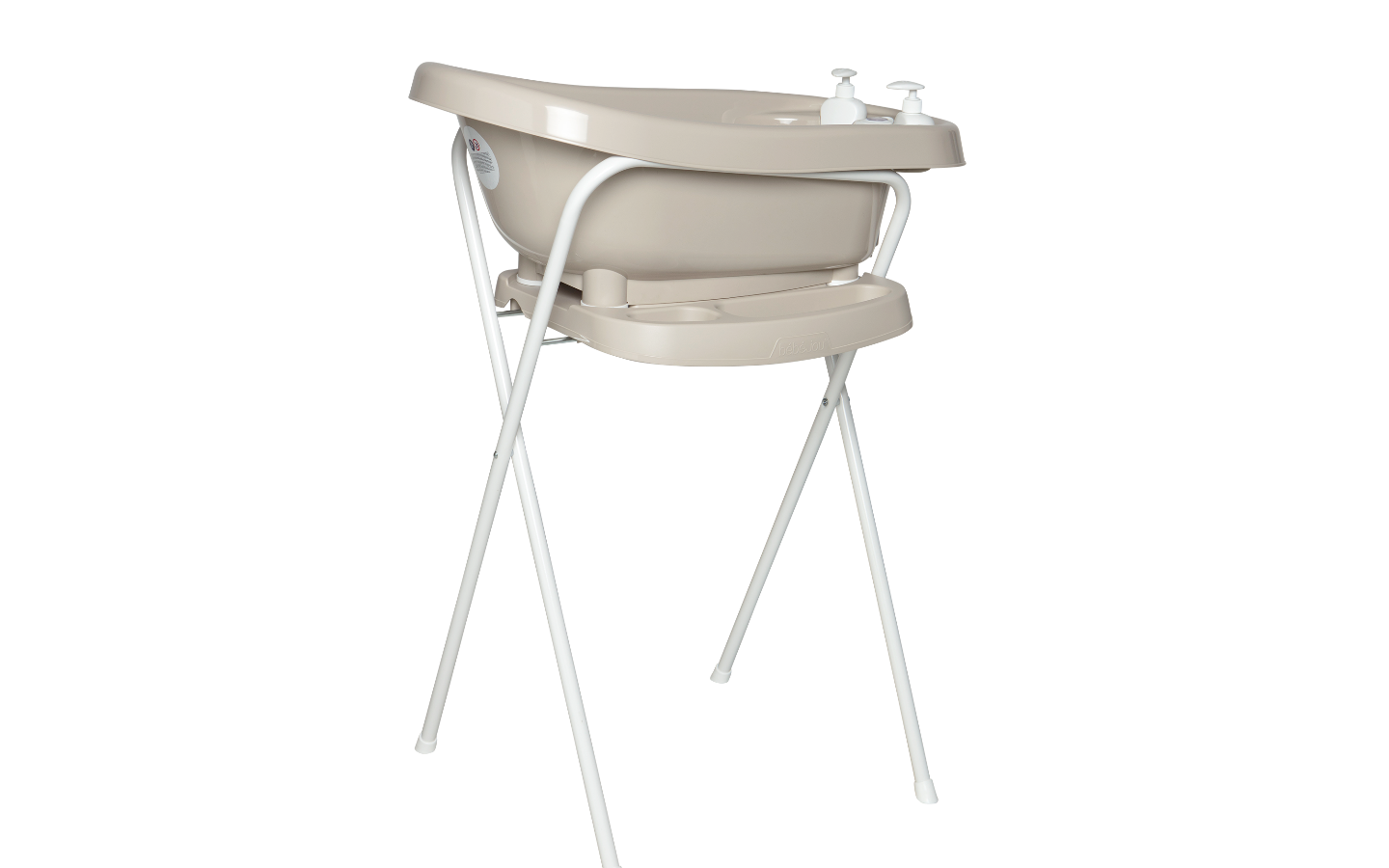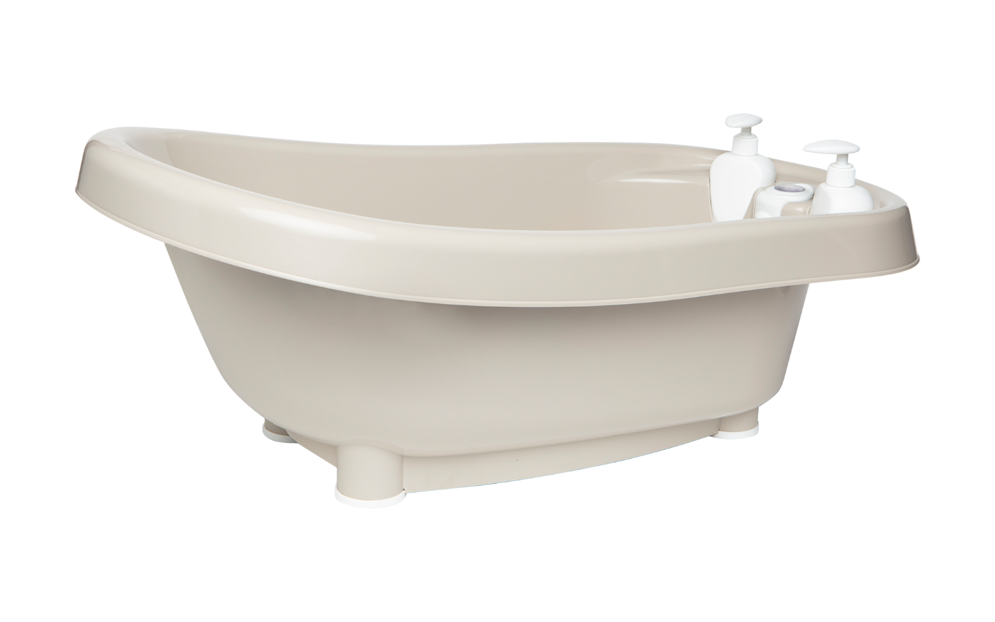 With the bébé-jou Thermo bath with our innovative “CLICK-system” you choose for safety and extra comfort during the bathing of your child. With the help of this innovative system you can easily and solidly place the bath with just “2 clicks” on the bébé-jou bath stand (2200 or 2205). The bath comes just as easily off the stand as it is placed on it, by squeezing the system on the bottom of the stand. This bath also comes with an integrated bath thermometer and two soap dispensers: one for shampoo and one for soap. A luxurious bath with everything you might need, so that you can optimally focus on your little one during bathing. The thermometer also functions as a plug, when it is pushed upwards the bath is slowly drained. The water can be caught in (for example) the bébé-jou nappy pail with the included drain hose. In this way heavy lifting will be avoided.