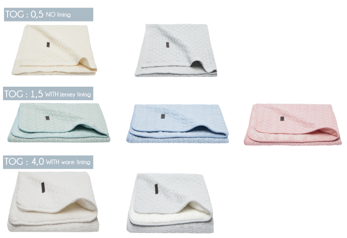 Dans la fabuleuse collection bébé-jou, il existe plusieurs couvertures de lit et de lit bébé, un véritable must-have pour chaque chambre d'enfant! Consultez les valeurs TOG par couverture dans l'image ci-dessous.