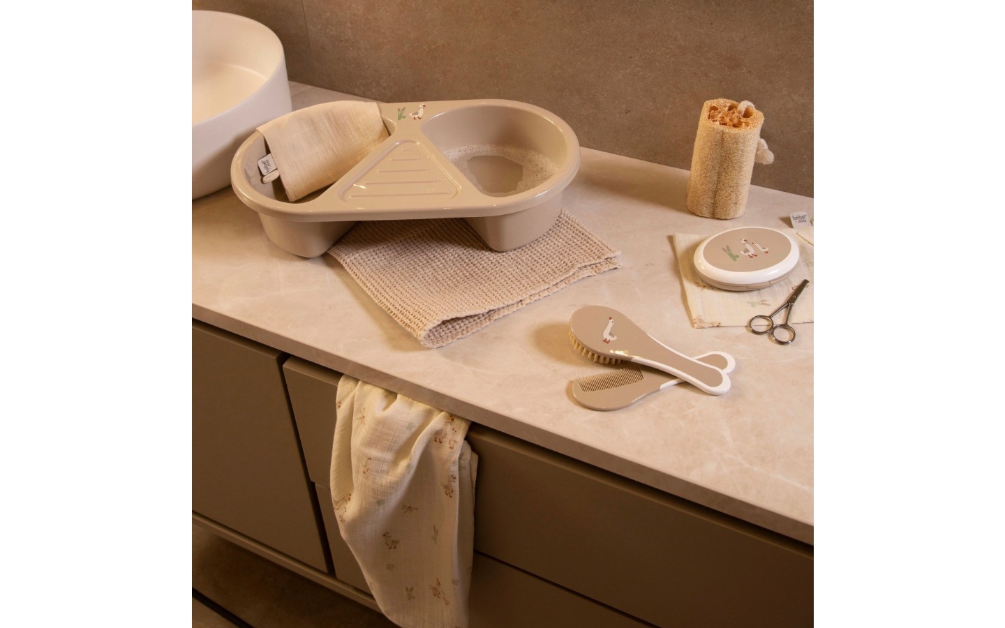 De bébé-jou waskom kan je gebruiken om je kindje in te zepen voordat het in bad gaat of wanneer je, je kleintje wast op de commode. Hoe werkt het? Het ene bakje vul je met schoon water en in het andere bakje spoel je het washandje uit. Ideaal om je kleintje even snel op te frissen.