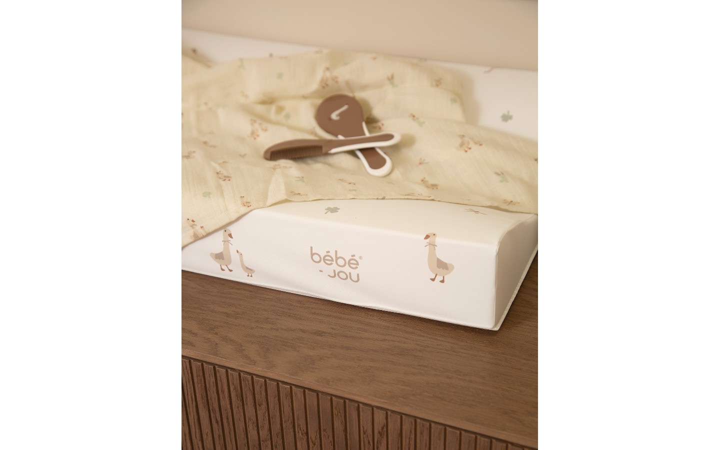 Het bébé-jou aankleedkussen met de Allover print is gemaakt van hoog elastisch comfortschuim voor een langere levensduur en comfortbehoud. De bijzonder drukverlagende eigenschappen zorgen voor een goede ondersteuning van hoofd en nek van je baby. Het aankleedkussen is waterdicht, wel zo hygienisch, want een ongelukje is zo gebeurd. De 'u-vorm' zorgt ervoor dat je baby stabiel in het midden blijft liggen tijdens het aankleden en verschonen. Het waskussen is Oeko-Tex gecertificeerd en heeft een afmeting van 72x44 cm.