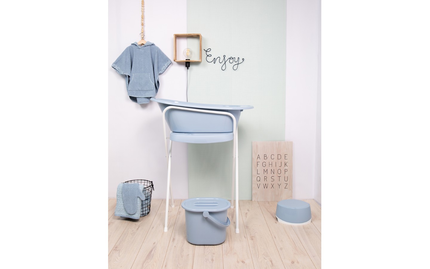 De bébé-jou inklapbare badstandaard is uitgerust met een speciaal “CLICK systeem”. Met behulp van dit innovatieve systeem plaats je het bébé-jou babybad 256 en thermobad 260 heel eenvoudig, "met 2 clicks" muurvast op de standaard. Net zo gemakkelijk “click” je de badjes weer los, door aan de onderzijde van de badstandaard het systeem in te knijpen. Heel handig, ook de bébé-bubble (bademmer) is geschikt voor deze badstandaard. Kortom je hebt maar één standaard nodig waarop je de bademmer, maar later ook het badje kan plaatsen. Natuurlijk is een goede houding erg belangrijk tijdens het badderen en ook wil je alles bij de hand hebben. De badstandaard is daarom uitgerust met een handdoekenrek en verkrijgbaar in twee verschillende hoogtes: 98cm en 103cm.