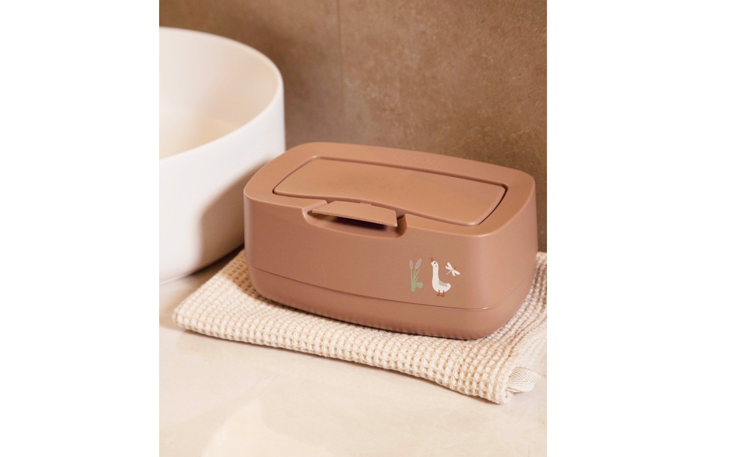 De nieuw ontworpen bébé-jou easy wipe box is een praktische box met een moderne look en feel, ontworpen voor het opbergen van vochtige babydoekjes. De easy wipe box voorkomt dat de doekjes uitdrogen en de speciale opening zorgt ervoor dat het volgende doekje er makkelijk uit kan worden gehaald. De box is eenvoudig met één hand te openen en te sluiten. De easy wipe box is geschikt voor alle merken babydoekjes.