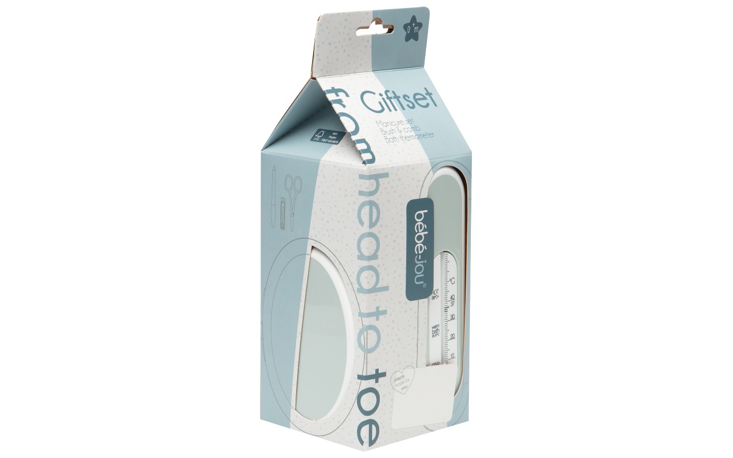 Een praktische verzorgingsset van bébé-jou Fabulous om toekomstige ouders kado te geven. In deze set zit een kapset, manicureset en een badthermometer. Drie basisproducten die je nodig hebt voor een goede verzorging van je pasgeboren kindje.