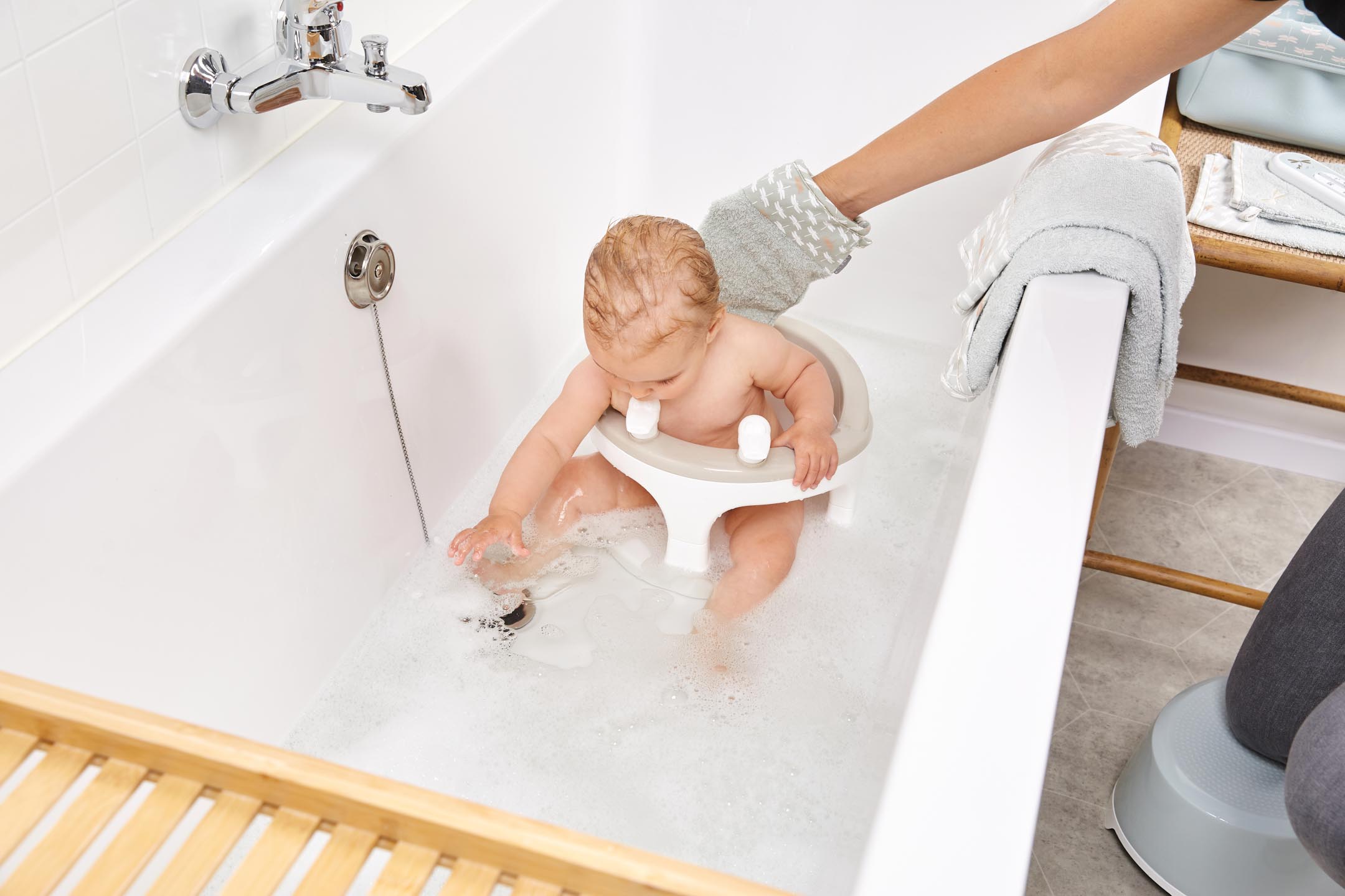 De badring biedt je kindje de vrijheid om rechtop te zitten en te spelen in het water, terwijl jij de ruimte hebt om hem of haar eenvoudig te wassen. Dit maakt van het dagelijkse badritueel niet alleen een praktisch moment, maar ook een waardevol speelmoment waarin plezier en verzorging hand in hand gaan.
